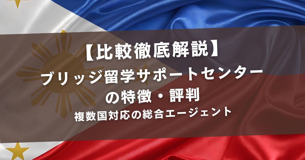 本記事では、ブリッジ留学サポートセンターの特徴・評判・注意点に加え、人気のスマ留・タビケン留学・CEBU21・ミライズ留学・QQEnglish・KRM留学・CEBRIDGE・スクールウィズ・ネイティブキャンプ留学・フィリピン留学センター(DEOW)との比較まで詳しく解説します。